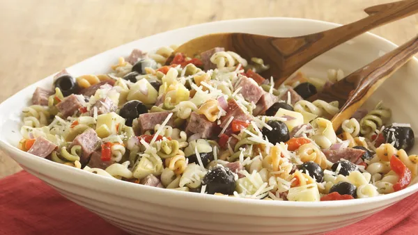 Olives, peppers, pasta and Parm beckon you to enjoy salad Italian style, slow and carefree.