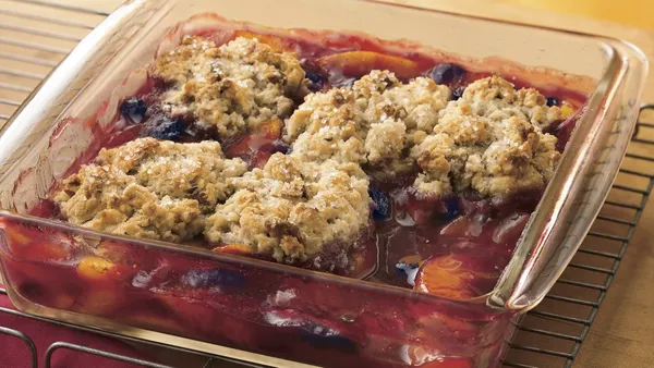 Make the most of summer's fresh fruit and mix up an easy Blueberry Cobbler. With a tender topping and a berry filling, this easy Blueberry Cobbler with Bisquick™ Original Pancake & Baking Mix is a dessert you'll be asked to make again and again. If you don't have fresh blueberries on hand, frozen blueberries achieve the same, great taste. For this Blueberry Cobbler recipe, just make sure the total volume of fruit remains the same if using frozen blueberries. Spoons up and enjoy.