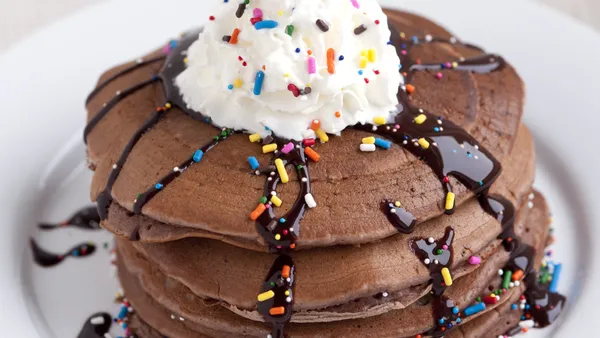 Step5To serve, top each pancake with glaze and additional candy sprinkles.