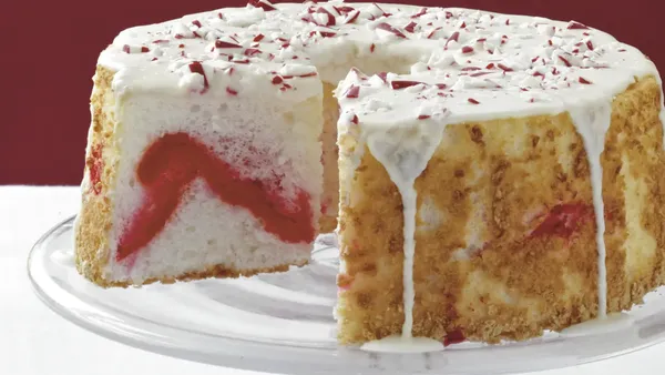 Step1Heat oven to 350°F (325°F for dark or nonstick pan). Generously grease and flour 12-cup fluted tube cake pan. Make cake batter as directed on box. Pour about 2 cups batter into pan. In small bowl, pour about 3/4 cup batter; stir in food color and peppermint extract. Carefully pour pink batter over white batter in pan. Carefully pour remaining white batter over pink batter.