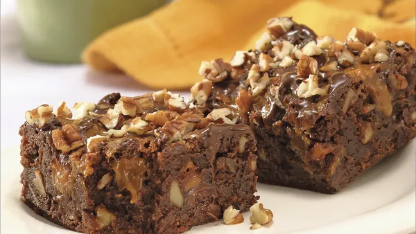 Looking for a dessert made using Gold Medal® all-purpose flour? Then check out these caramel and pecan brownies – a crunchy treat!
