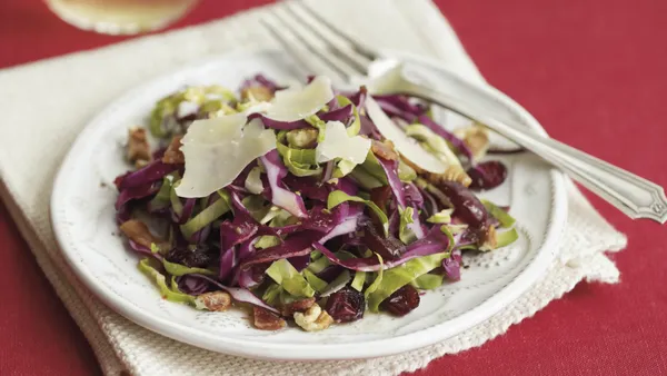 Step1Cut Brussels sprouts in half; cut each half crosswise into thin slices. Place sprouts and onion in separate resealable food-storage plastic bags; seal bags. Refrigerate 8 hours.