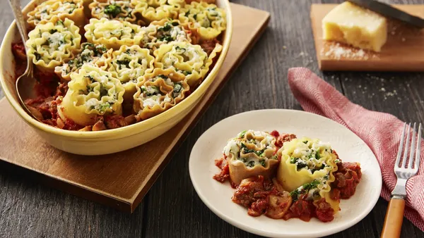 Step3In small bowl, mix ricotta cheese, carrot, spinach and egg whites. Spread each cooked lasagna noodle with generous 1/4 cup spinach filling to within 1 inch of one short end. Roll up firmly toward unfilled end.