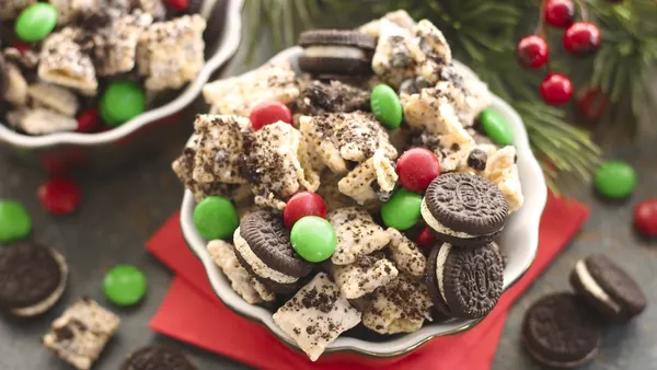 Need a sweet holiday snack mix for your next Christmas event? Try this Christmas Chex™ Party Mix inspired by a winter snow day. Chex™ cereal, marshmallows and pretzel twists are coated in vanilla almond bark and sprinkles, dusted with powdered sugar and tossed with holiday-colored chocolate candies. No matter the occasion, you can't go wrong with this holiday Chex™ mix recipe!