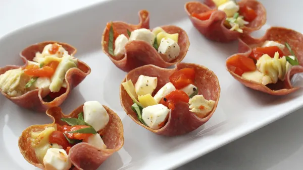 Cheesy crust made using Bisquick® mix layered with bell peppers and Progresso® artichoke hearts mixture gives you savory baked appetizers - perfect to treat a crowd.