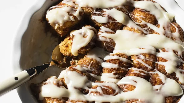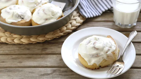 Step5In small bowl, mix powdered sugar and whipping cream until smooth. Spread glaze over rolls. Serve warm.
