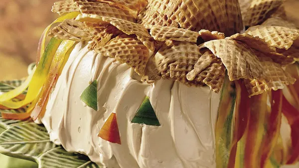 We added pureed pears and pumpkin pie spice to cake batter to create a moist and flavorful cake.
