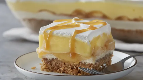 Step5When ready to serve, drizzle remaining 2 tablespoons caramel sauce on top. Cut into 6 rows by 4 rows. Cover and refrigerate any remaining pieces.