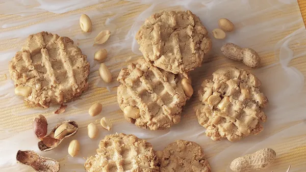 Step1Heat oven to 350°F. In large bowl, mix brown sugar, butter, vanilla and eggs with spoon. Stir in flour, oats, baking powder and baking soda. Stir in cereal and peanuts.