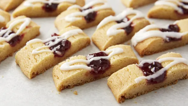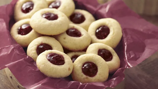 Step2Add jam and food color; beat 1 minute at high speed. Pipe or spoon 1-inch mounds onto paper-lined cookie sheets.