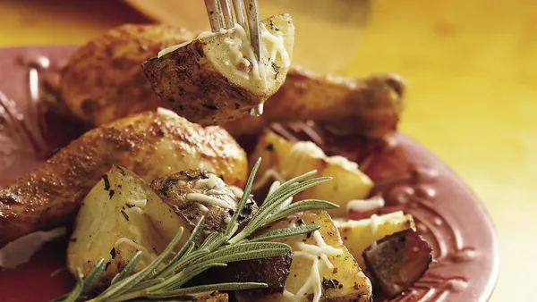 Step2Mix remaining ingredients in large bowl. Add potatoes; toss to coat. Spread potatoes in single layer in pan.