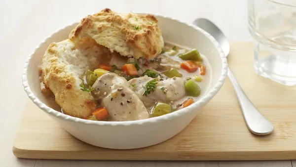 Make delicious homemade dumplings that simmer over a savory combination of chicken and vegetables. Mmm.