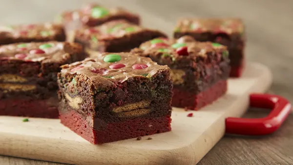 Step2With frosting, attach 2 M&M's™ minis chocolate candies to top of each cookie for eyes.