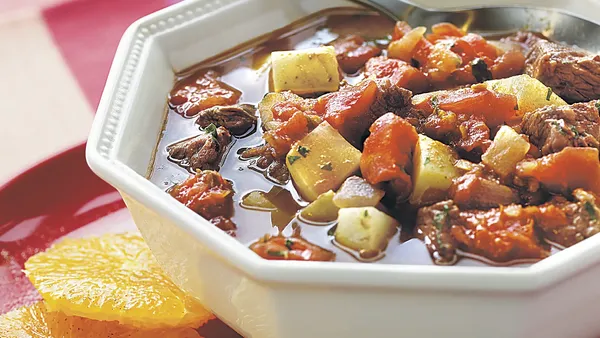 Steak sauce isn't just for grilled meat; it also works for adding flavor to this beef soup loaded with fresh and frozen vegetables.